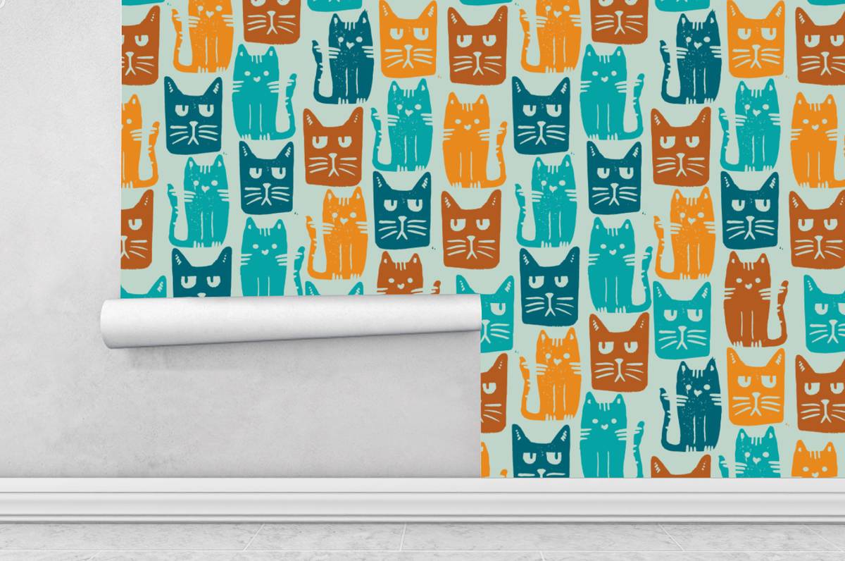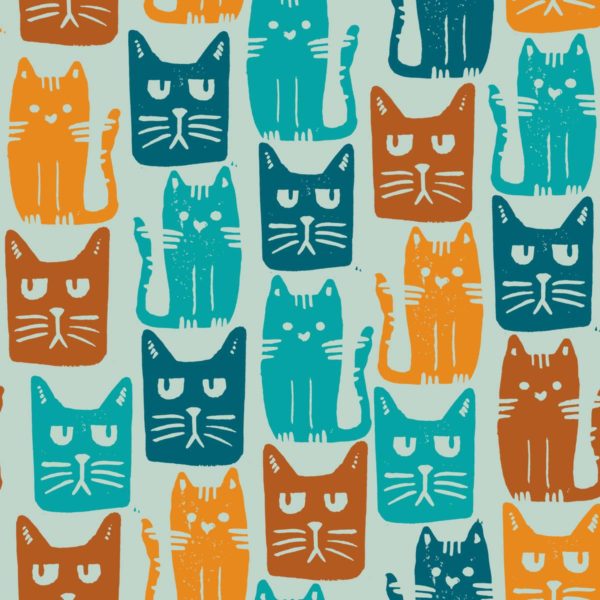 Liebevoll gestaltete und lustige Mietzekatzen in Linolschnitt- Drucktechnik.