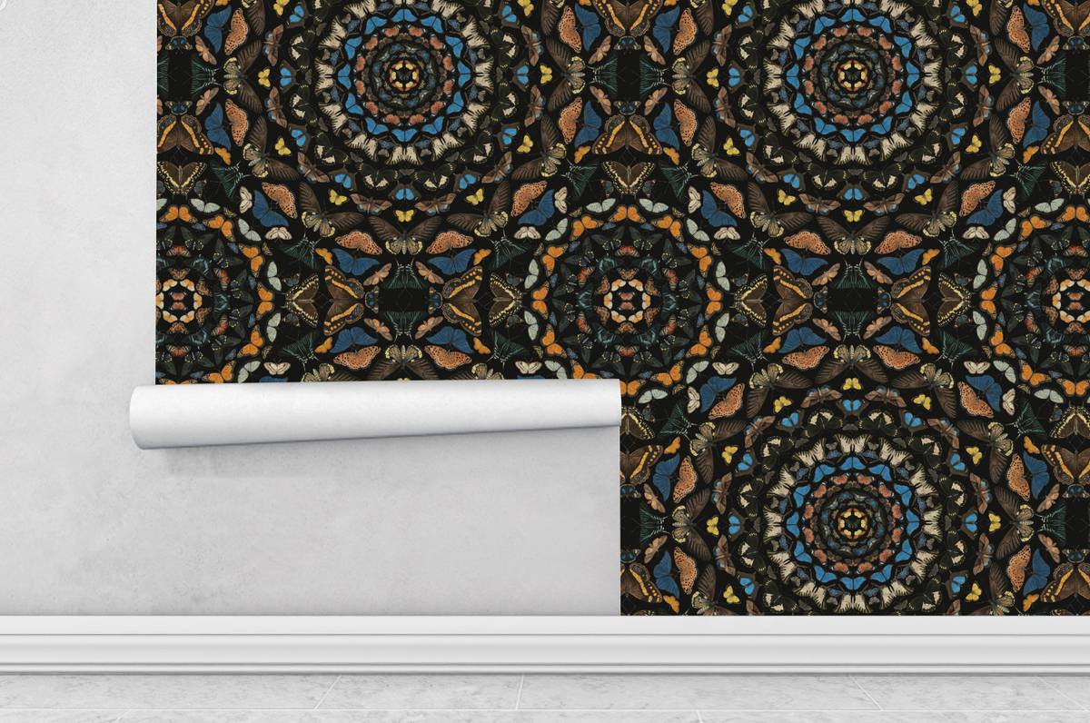 Bunte Mandalas aus zarten, tanzenden Schmetterlingen. Dieses Muster ist lebendig, es lebt, tanzt und flattert. Lass Dich einfach mitreissen von diesem Kaleidoskop-Muster aus Flügeln…