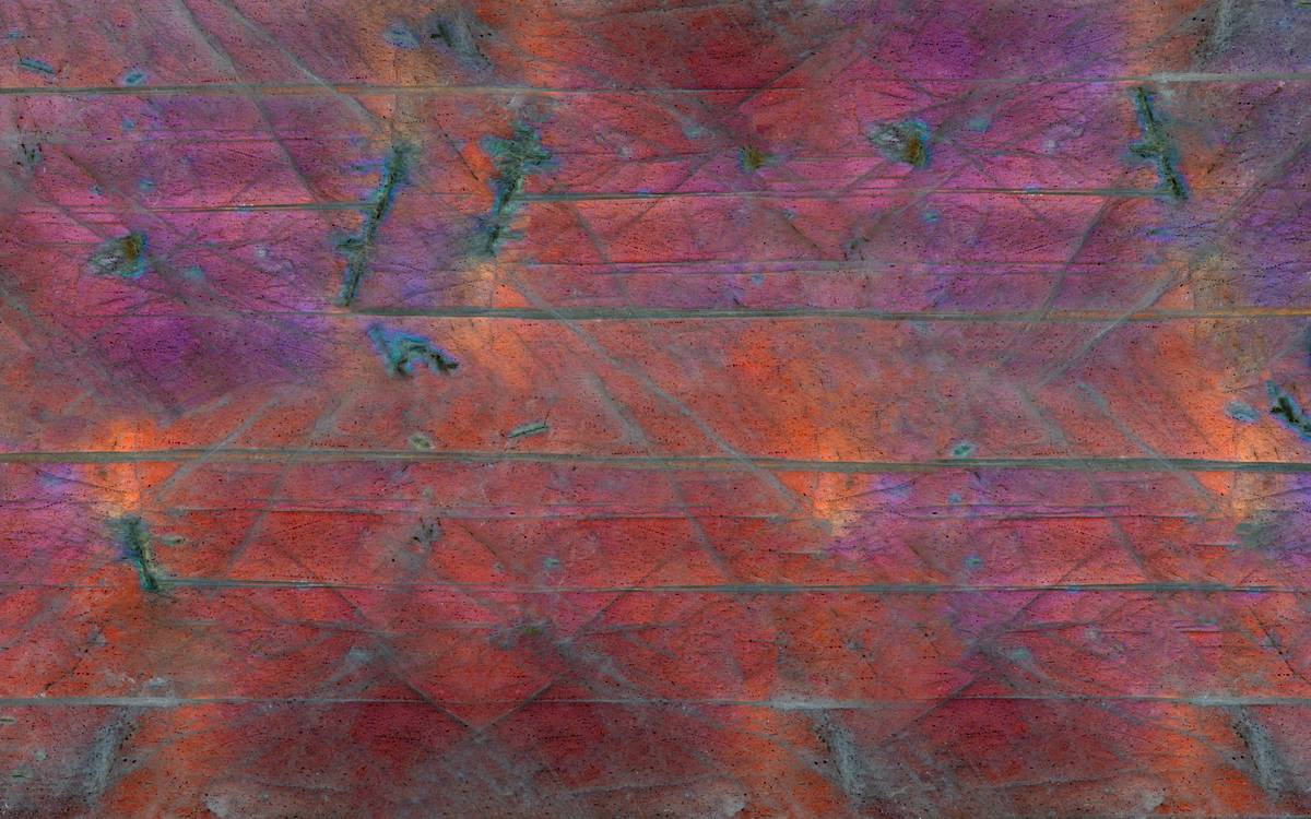 Edelste Steinoptik, ein Labradorit in leuchtendem Pink und Orange.