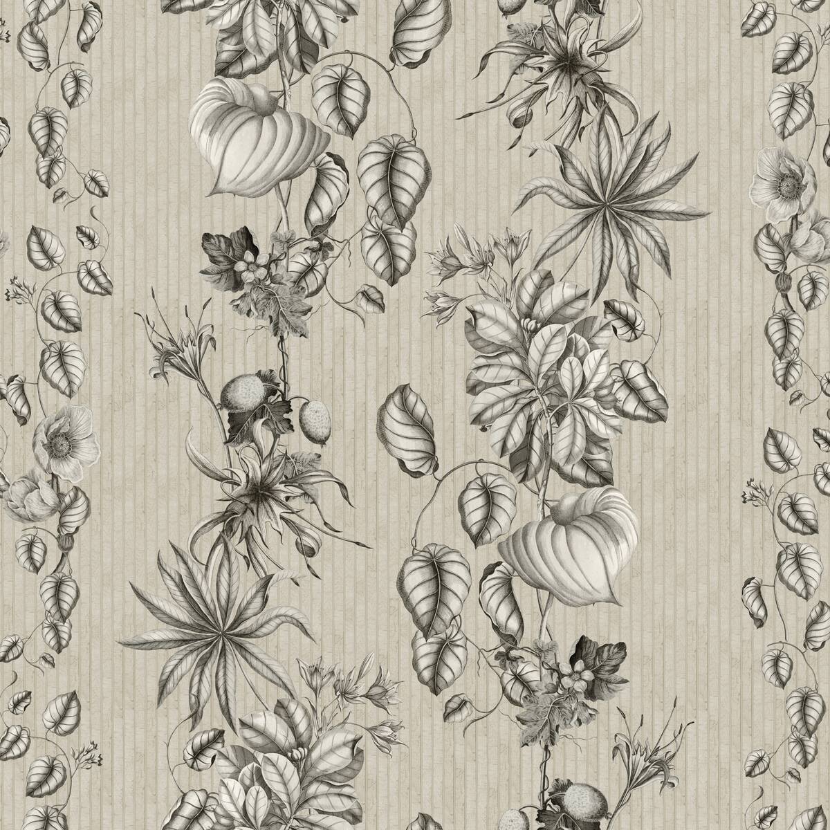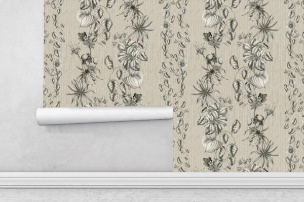 Zarte, filigrane Gartenstauden von Hand gezeichnet und in einem Streifenmuster künstlerisch gestaltet.