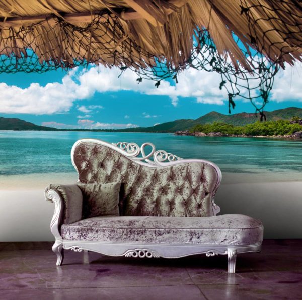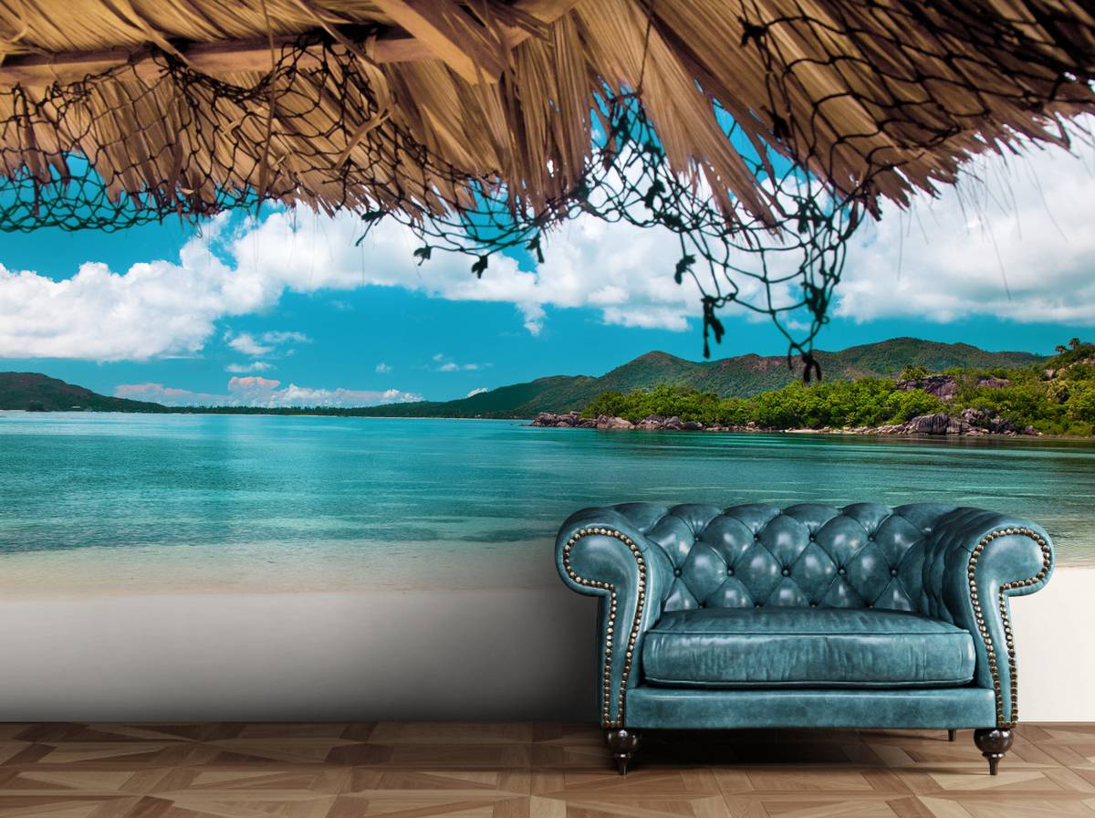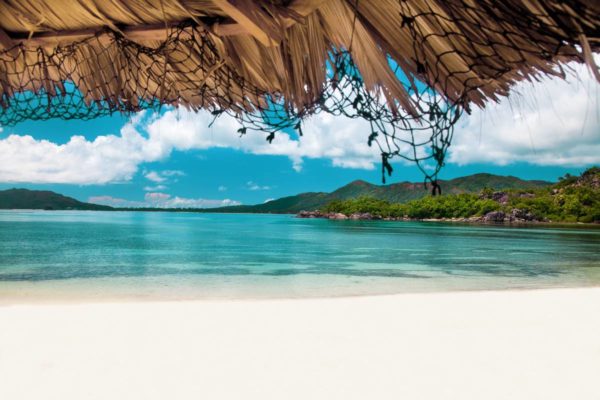 Der perfekte Schattenplatz unter dem Sonnenschirm aus Palmenblättern.