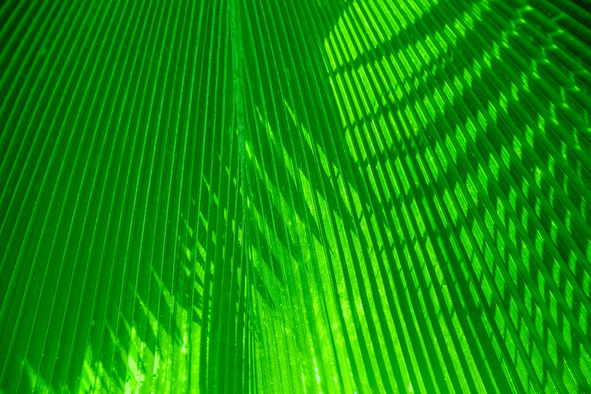 Faszinierende Muster ergeben sich aus dem Schattenspiel dieser Palmenblätter.